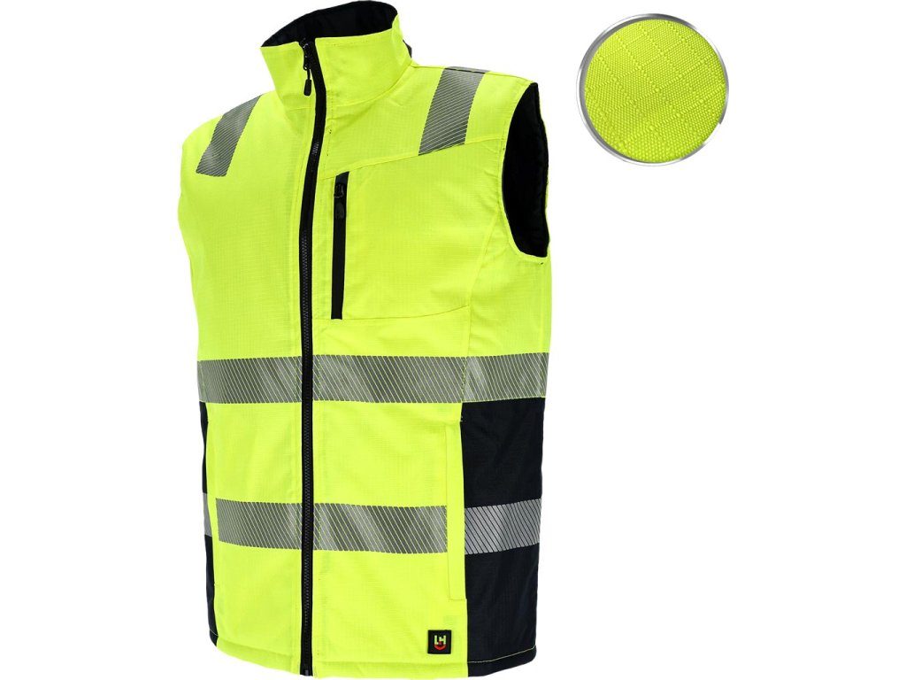 Pánská zateplená ochranná vesta – odolná, viditelná a praktická pro práci v exteriéru.