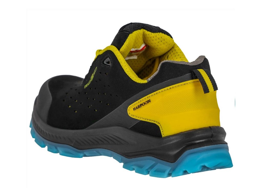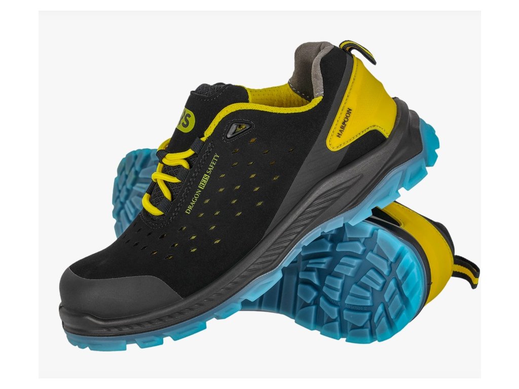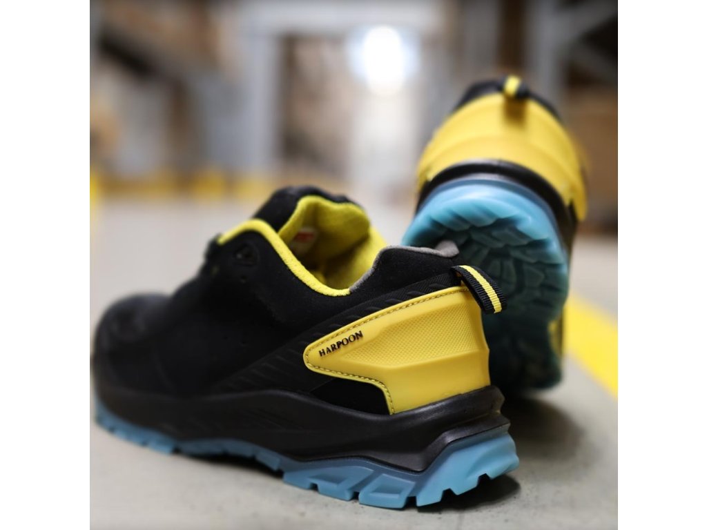 Pánské bezpečnostní polobotky HARPOON BYN představují ideální spojení ochrany, pohodlí a moderního vzhledu. Jsou vyrobeny z odolné semišové kůže kombinované s TPU, což zajišťuje dlouhou životnost i při náročném používání. Obuv je typu půlboty – sahá pod kotník, je lehká, dobře odvětrávaná a díky šněrování se snadno přizpůsobí noze. Splňuje kategorii S1PS SR FO dle normy EN ISO 20345.