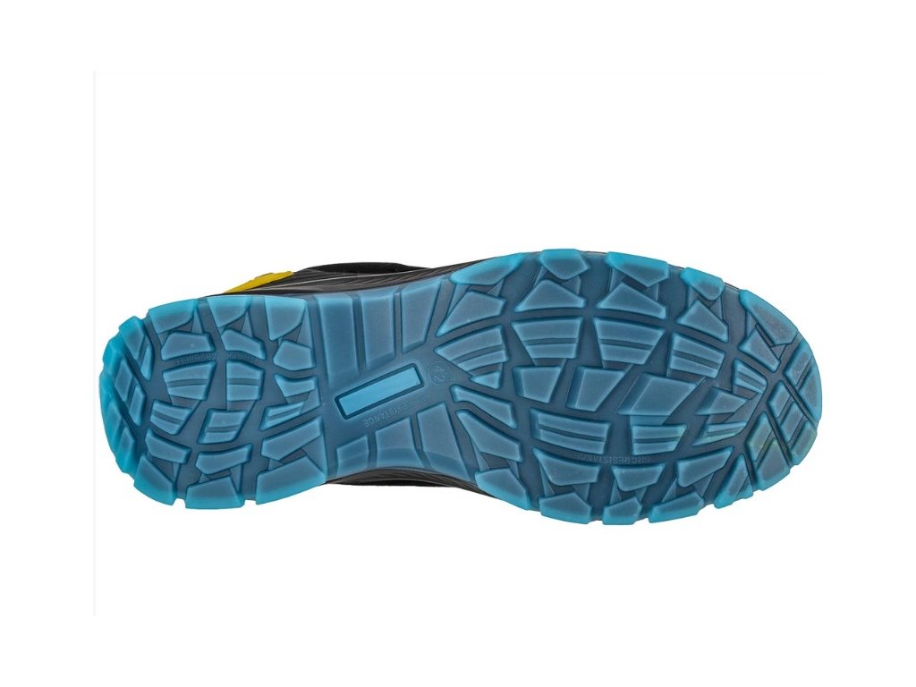 Pro maximální bezpečnost jsou boty vybaveny kompozitní špičkou (odolnost proti nárazu do 200 J a tlaku do 15 kN) a kevlarovou planžetou proti propíchnutí (odolnost do 1100 N). Podešev z PU o dvojí hustotě je protiskluzová, olejivzdorná, antistatická a tlumí nárazy v oblasti paty. Gumové vyztužení špičky chrání botu proti oděru a prodlužuje její životnost. Výhodou je také konstrukce METAL FREE – bez kovových součástí, takže obuv je lehčí a vhodná i do prostředí s detekčními rámy.