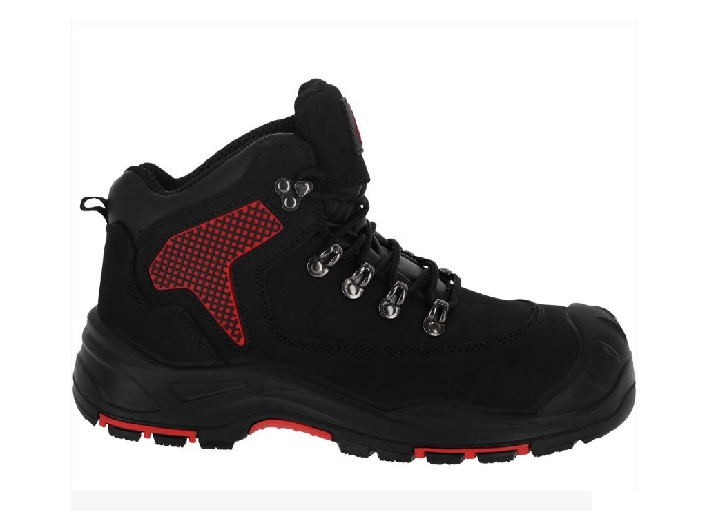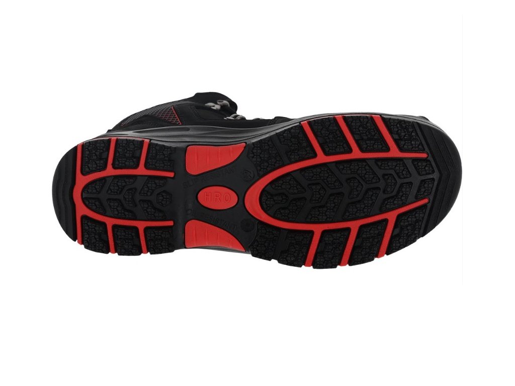 Boty jsou vybaveny kompozitní špičkou z vlákna skla, odolnou proti nárazu až 200 J a tlaku do 15 kN, a kevlarovou planžetou proti propíchnutí (odolnost do 1100 N). Protiskluzová podešev z PU/gumy je olejivzdorná, antistatická a tlumí nárazy v oblasti paty. Díky odolnosti vůči žáru až do 300 °C je obuv vhodná i pro práci v prostředí s vysokými teplotami. Pro delší životnost je špička bot opatřena gumovým vyztužením, které zabraňuje rychlému opotřebení při častém kontaktu s podkladem.